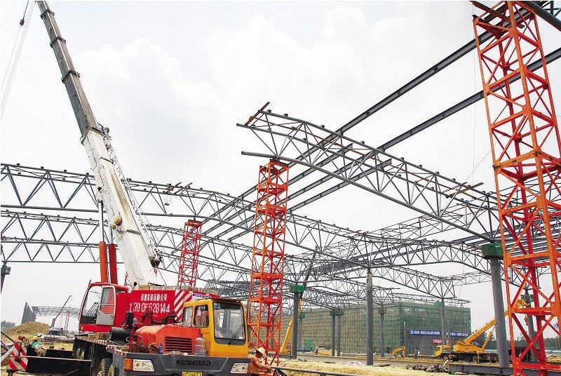7月2日,施工人員正加緊吊裝京滬高鐵蚌埠站站臺鋼架結構雨棚。作為京滬高鐵全段較大的客站蚌埠站站房工程,目前建設速度不斷加快,預計今年9月前站房全部竣工、交付使用。按照列車(chē)運行規劃,2015年??苛熊?chē)40對,2020年??苛熊?chē)73對。記者 郭雷 通訊員竇凱 攝