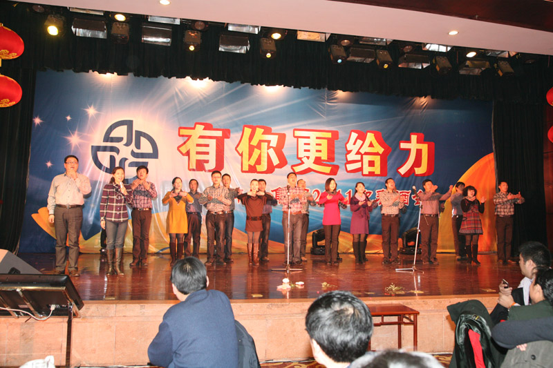 酒會(huì )上,公司表彰了2010年度6名創(chuàng )新標兵和32名敬業(yè)模范,公司領(lǐng)導分別為敬業(yè)模范頒發(fā)證書(shū)和獎金,張孝成副市長(cháng)為創(chuàng )新標兵頒發(fā)證書(shū)、獎金并致辭,肖超秘書(shū)長(cháng)、創(chuàng )新標兵及敬業(yè)模范抽出19名幸運的獲獎員工,為大家呈上了精神大餐和物質(zhì)大餐;著(zhù)名喜劇表演藝術(shù)家陳佩斯領(lǐng)銜主演的話(huà)劇《雷人晚餐》在蚌埠大劇院隆重上演,員工們在酒會(huì )上獻出精彩紛呈的歌舞表演,為集團員工及珠城人民奉上文化大餐。與會(huì )人員舉杯同飲,共慶農歷新年的到來(lái)。