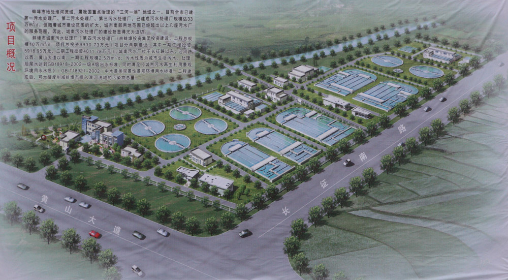 城南污水處理廠(chǎng)位于黃山大道以南、規劃長(cháng)征路以東、迎河以西,項目總投資9.8億元,總建設規模為日處理污水能力10萬(wàn)噸,一期工程2.5萬(wàn)噸/日,設計出水水質(zhì)為IA標準,收水范圍涉及高新區、禹會(huì )區、蚌山區三個(gè)市轄區,服務(wù)面積約2950公頃。項目建成后,小黃山以東、解放路以西、燕山路以南區域的污水將全部得到處理,實(shí)現全市范圍內污水處理的全覆蓋,對改變迎河、張公湖水質(zhì)不斷惡化的狀況,改善我市南部水環(huán)境質(zhì)量具有重要意義。