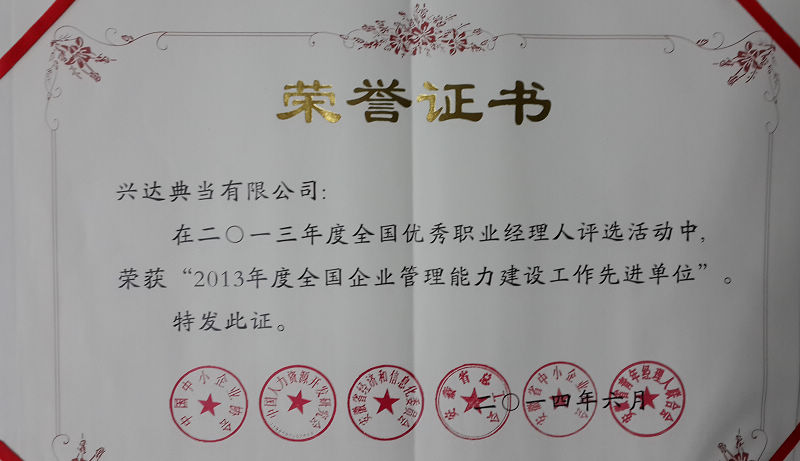興達典當被評為“2013年度全國企業(yè)管理能力建設工作先進(jìn)單位”
