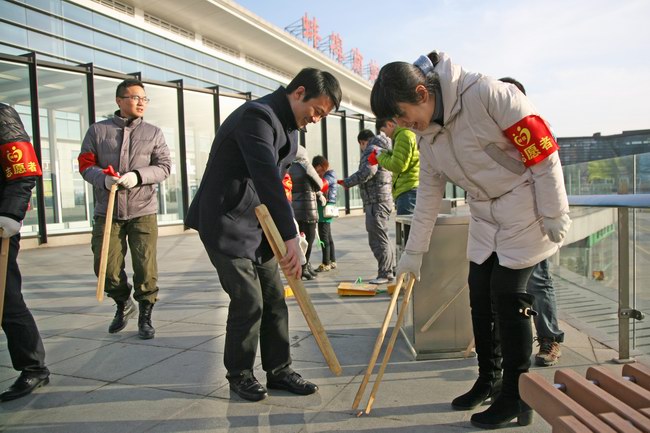 121日下午,公司20名志愿者冒著(zhù)嚴寒赴湖濱社區高鐵蚌埠南站開(kāi)展環(huán)境衛生和文明交通志愿服務(wù)。