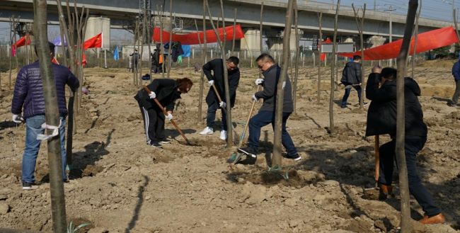 陽(yáng)春三月,春意盎然。3月12日,蚌投集團及其下屬子公司在高鐵苗木基地開(kāi)展2019年義務(wù)植樹(shù)活動(dòng)?;顒?dòng)現場(chǎng),大家心情愉悅,熱情高漲。志愿者們紛紛拿起鐵鍬,三兩人一組,相互配合,挖坑、培土、植苗、填平,種下一棵棵樹(shù)苗,為綠化貢獻自己的力量。