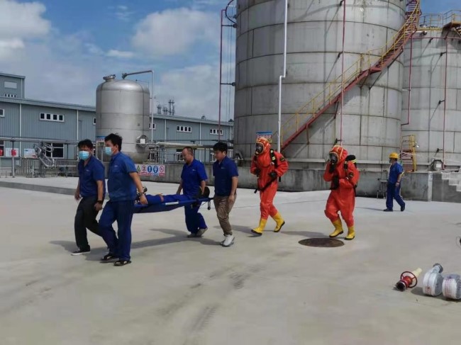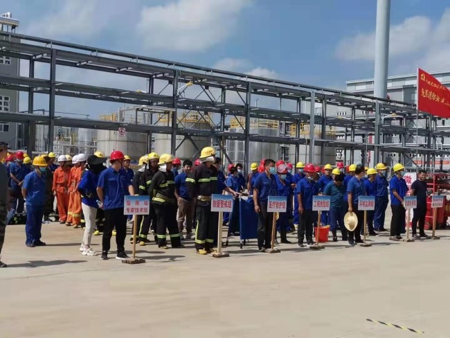 為檢驗《天潤化工生產(chǎn)安全事故綜合應急預案》在新廠(chǎng)區的可行性,7月22日上午,天潤公司在新廠(chǎng)區重大危險源1#丙烯腈罐區進(jìn)行了綜合應急演練。公司黨委書(shū)記、總經(jīng)理劉彭城任現場(chǎng)演練總指揮,黨委經(jīng)營(yíng)班子成員、中層管理人員、安全管理人員及相關(guān)部門(mén)應急救援組成員等70余人參與演練。